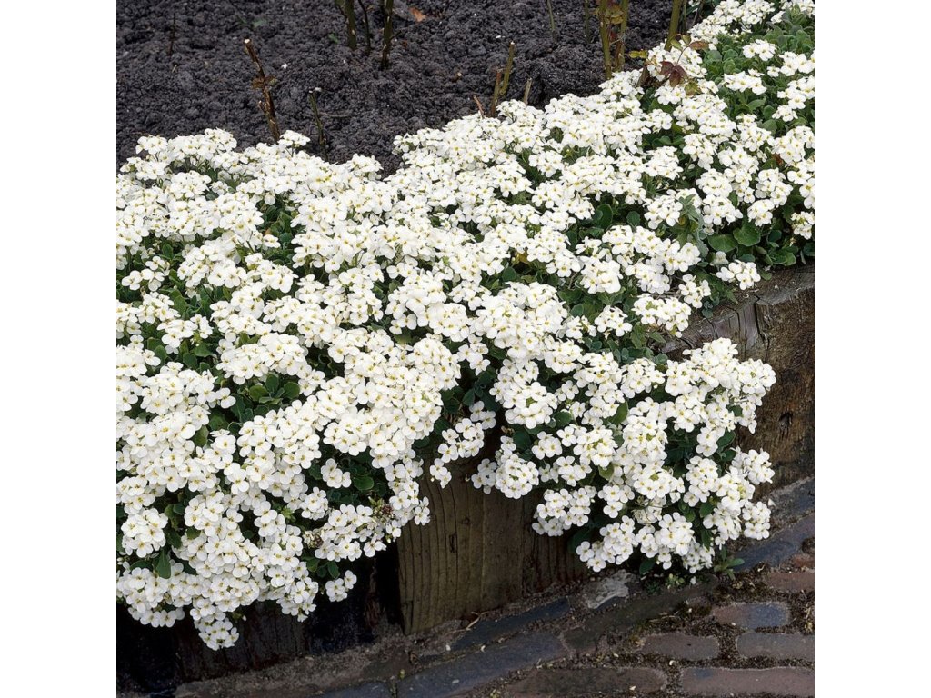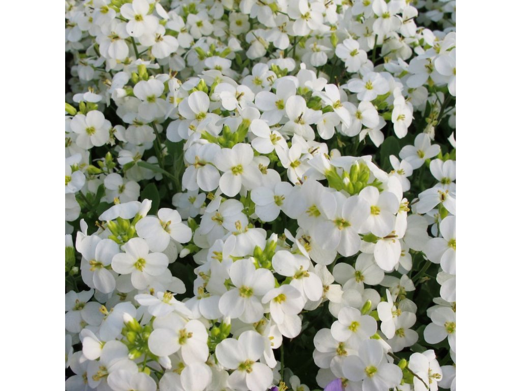 Huseník kavkazský „White“ je nízká, půdopokryvná trvalka s bohatým jarním kvetením, která vytváří husté bílé koberce.