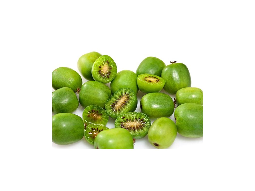 Tato popínavka nese plody stejné chuti a tvaru jako kiwi, velikosti větších angreštů, cca 4-5 cm dlouhé.