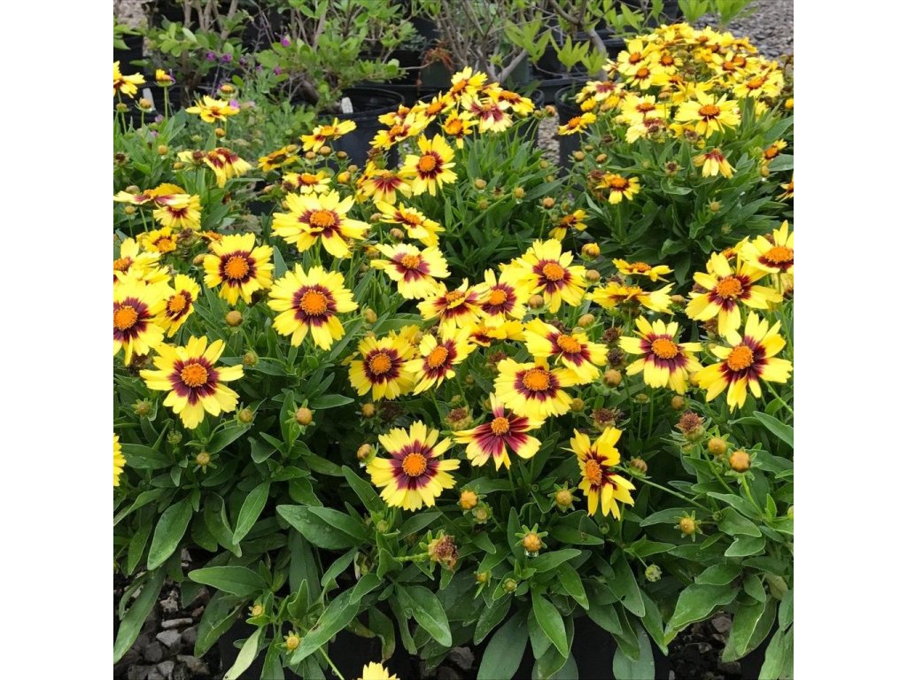 Coreopsis grandiflora „Andiamo Yell+Red“ je odrůda s působivými žlutými květy, které mají výrazný červený střed. Kvete od června do září a je ideální pro slunná stanoviště. Tato rostlina je velmi nenáročná na péči, snáší sucho a prospívá v propustné půdě. Je vynikající volbou pro trvalkové záhony, nádoby i okraje zahradních cest. Pravidelným odstraňováním odkvetlých květů podpoříte opětovné kvetení. „Andiamo Yell+Red“ je skvělý doplněk pro pestré letní kompozice.