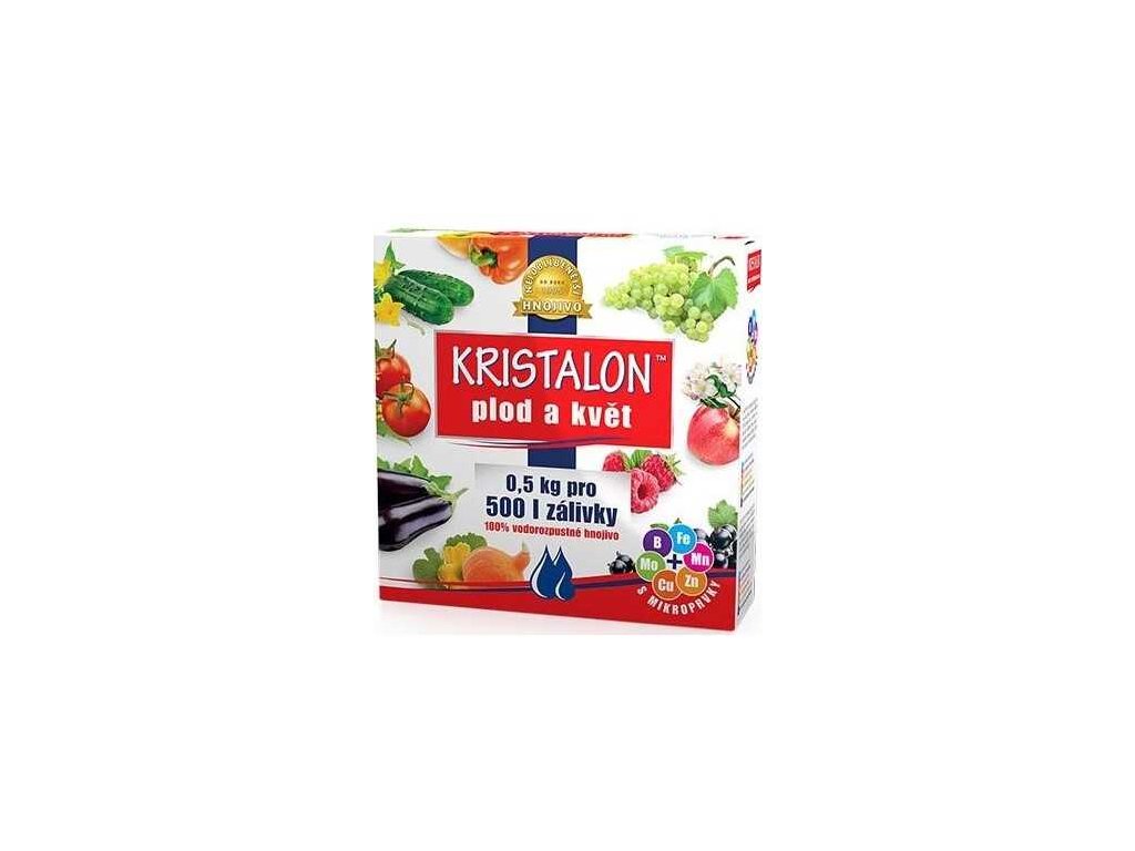 KRISTALON Plod a květ je krystalické hnojivo, vodorozpustné a určené pro rychlejší start produkčního období rostlin. Podporuje vyšší násadu a vybarvení květů a plodů. Kristalon je univerzálně použitelný pro ovoce, zeleninu, okrasné rostliny včetně balkonových, ovocné stromy a keře, vinnou révu. Zamezuje žloutnutí listů.