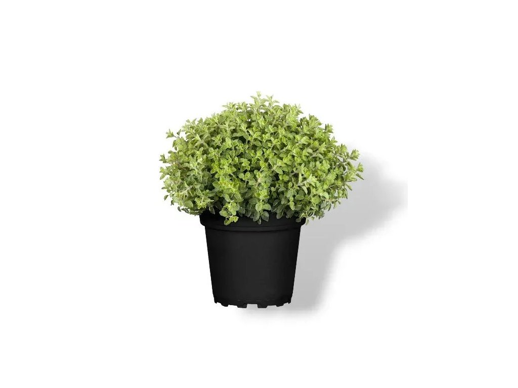 Oregáno v 11cm kontejneru je oblíbená bylinka, ideální pro kuchyňské použití, s aromatickými fialovými květy.