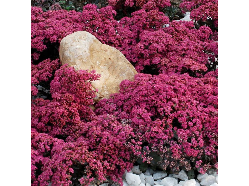 Sedum „Dazzleberry“ je atraktivní odrůda rozchodníku s unikátními modrozelenými listy a bohatým květenstvím v sytě růžovo-fialové barvě. Kvete od léta do podzimu a vyniká dlouhou trvanlivostí květů. Je ideální pro slunná stanoviště a nevyžaduje téměř žádnou péči. Díky svému nízkému vzrůstu tvoří hustý koberec, který brání erozi a potlačuje růst plevele. Skvěle se hodí do skalek, suchých záhonů, nádob i střešních zahrad. Snáší sucho, chudé půdy i mráz, což z něj činí perfektní volbu pro minimalistickou zahradu.