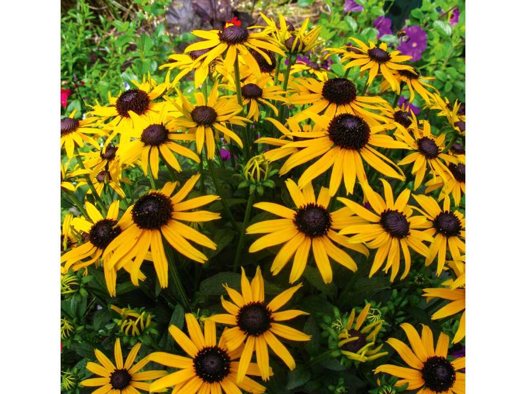 Rudbekie „Little Goldstar“ je kompaktní trvalka s množstvím zářivě žlutých květů, která kvete až do podzimu.