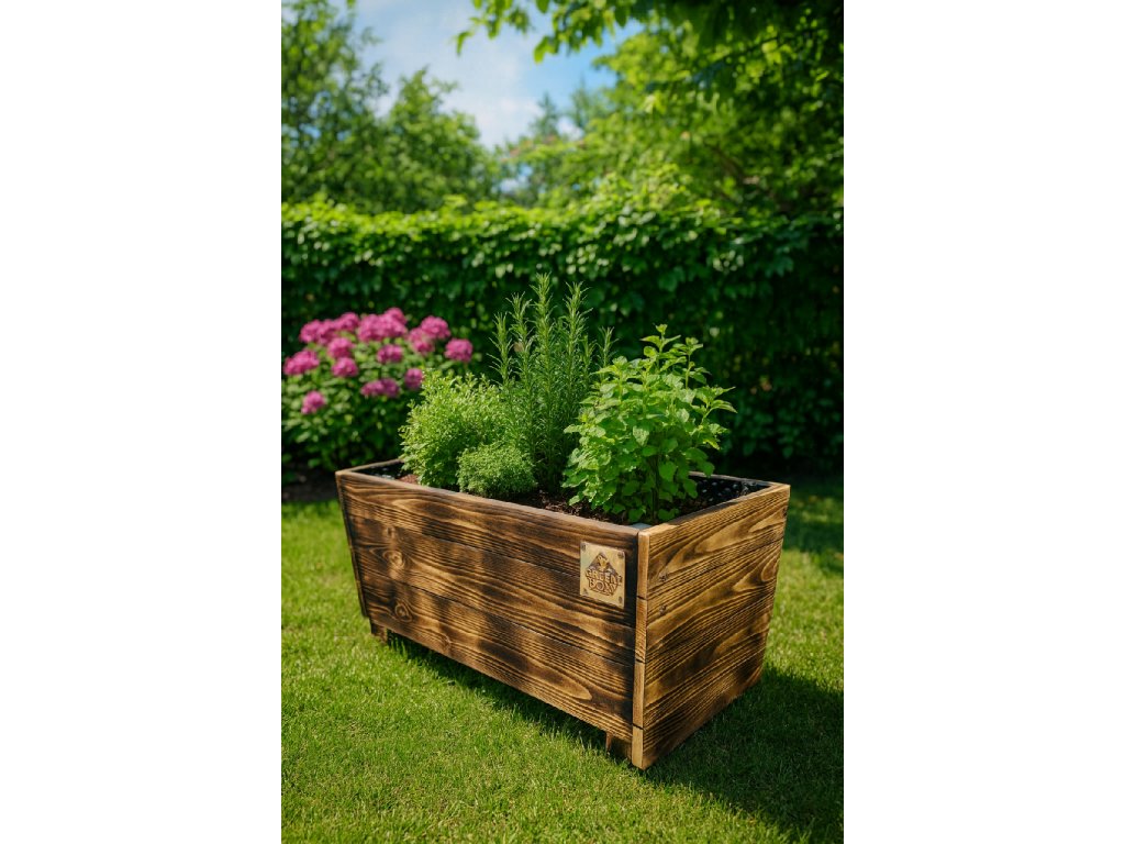 Designový truhlík z opalovaného dřeva, vyrobený v naší dílně z místních českých lesů. Ideální pro pěstování bylinek, zeleniny i okrasných rostlin – krásně doplní každou zahradu či terasu.